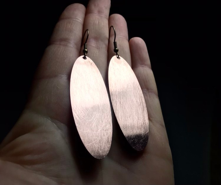 Vasest ovaalid, mis on valmistatud vanadest müntidest valtsimise abil. Konksud on nikli-ja pliivabad. Ehe on valminud käsitööna.